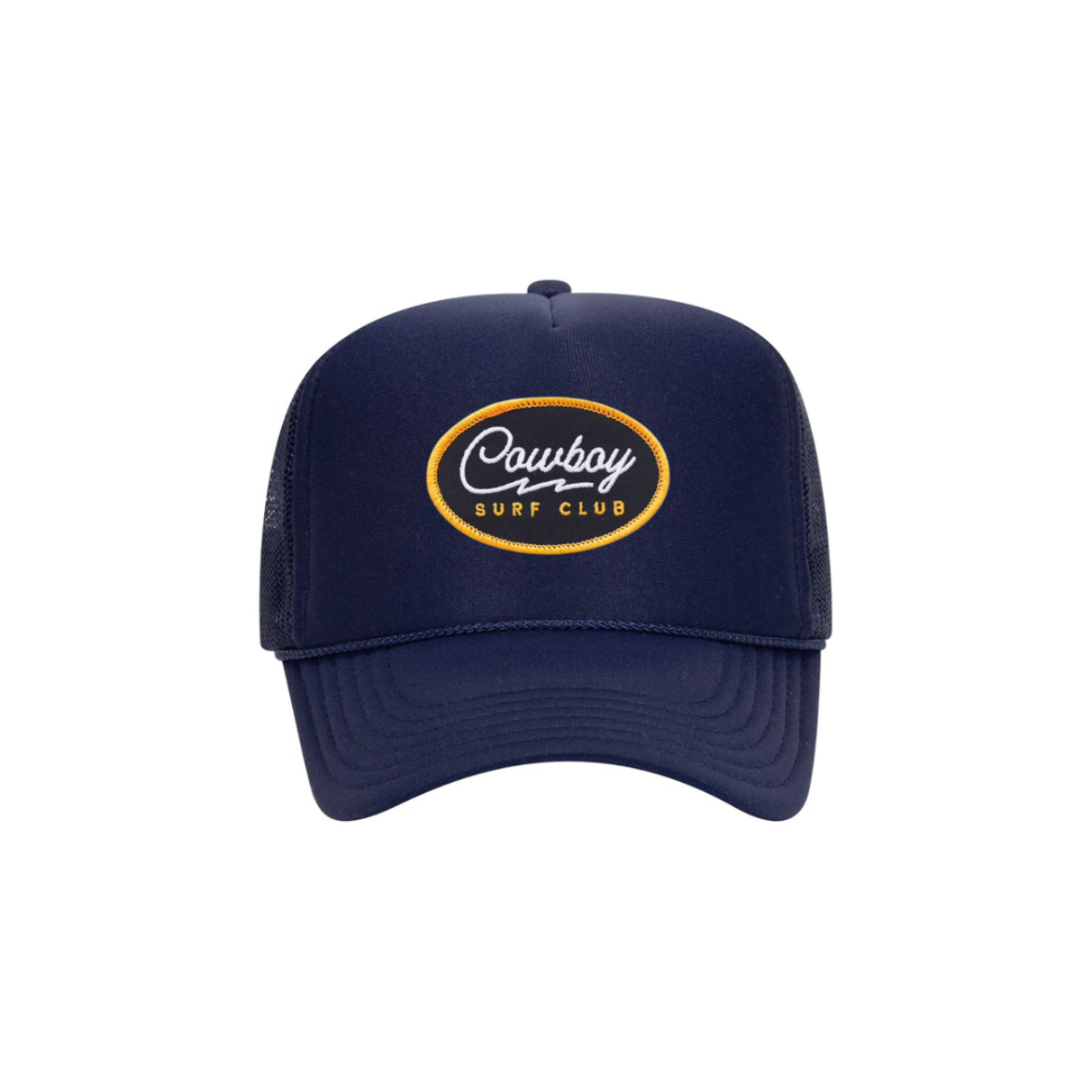 5 Panel High Crown Mesh Back Trucker Hat with Hand Stitched Patch.