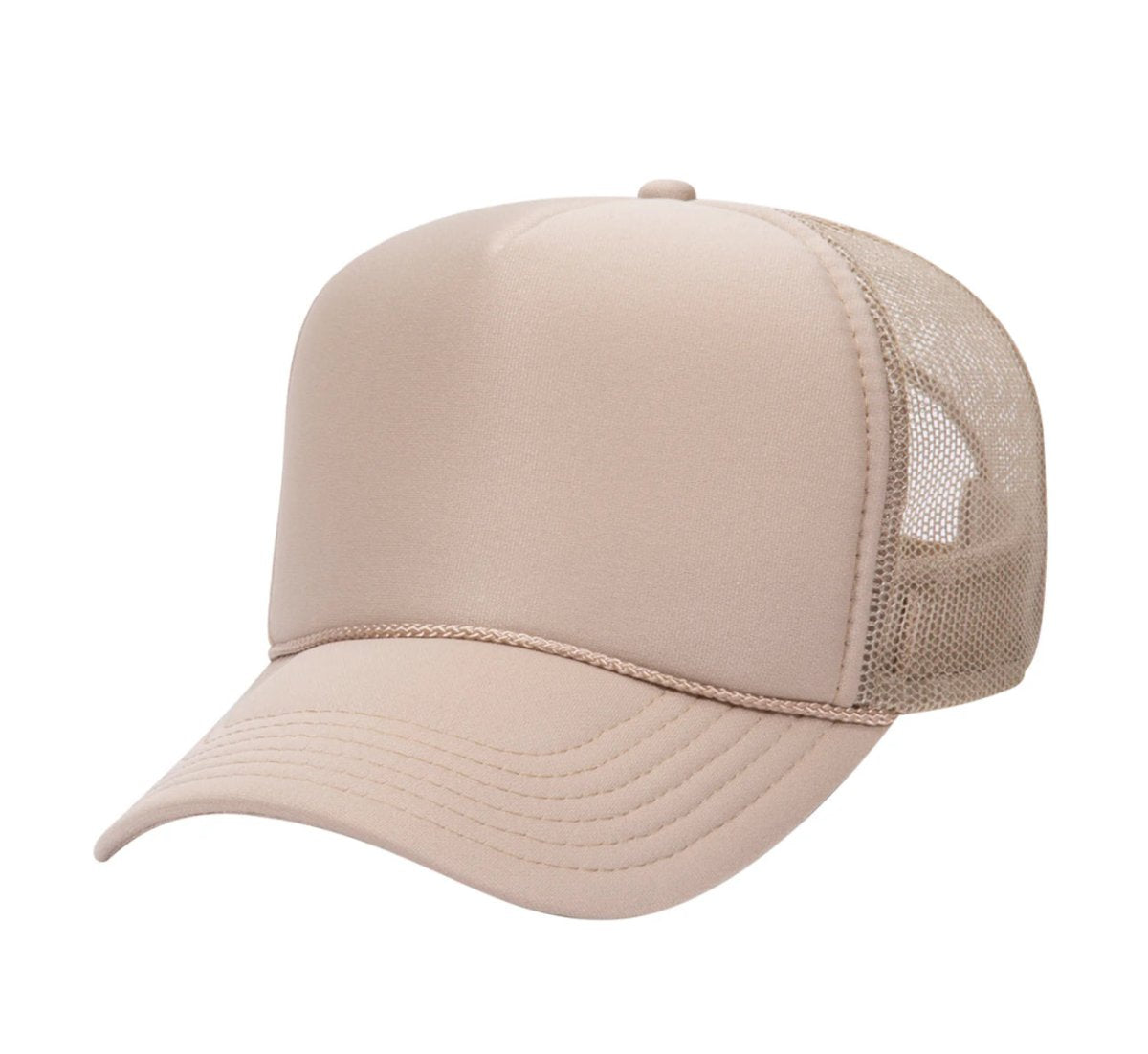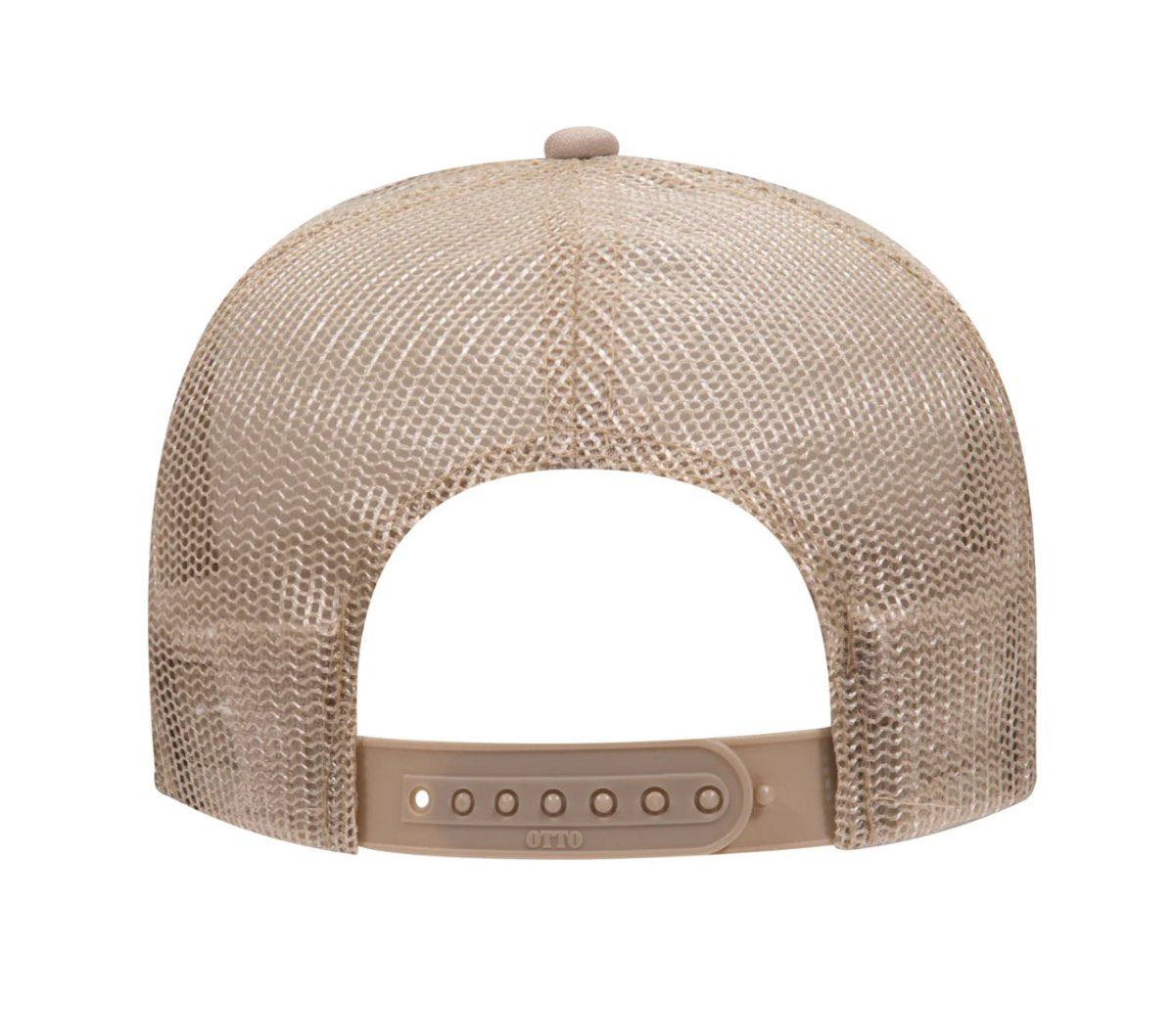 5 Panel High Crown Mesh Back Trucker Hat with Hand Stitched Patch.