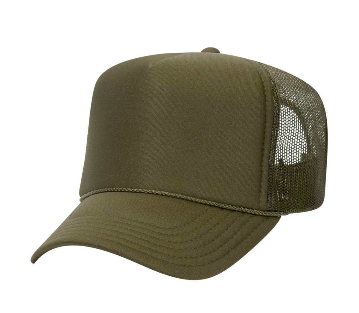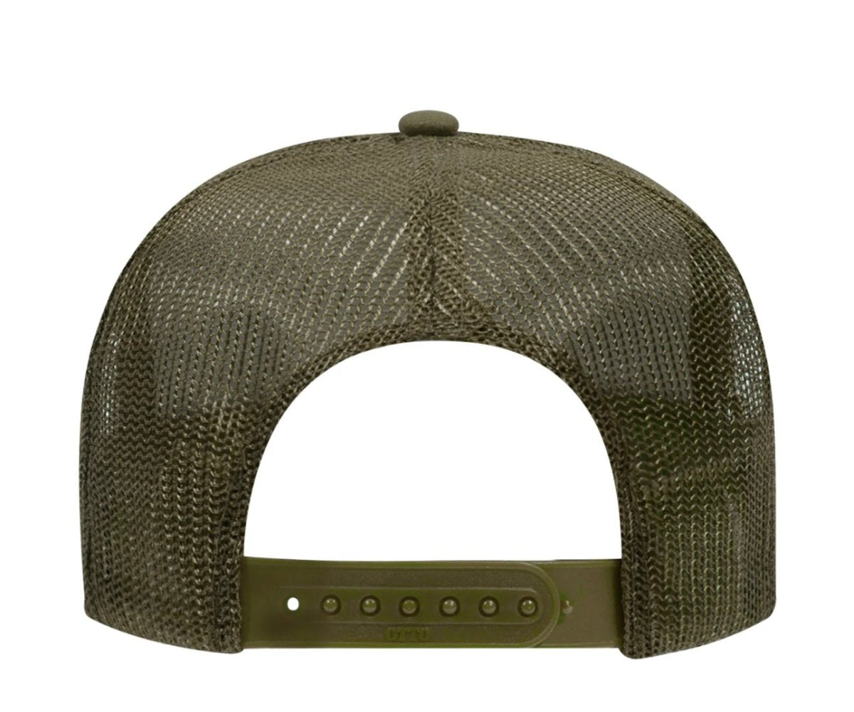5 Panel High Crown Mesh Back Trucker Hat with Hand Stitched Patch